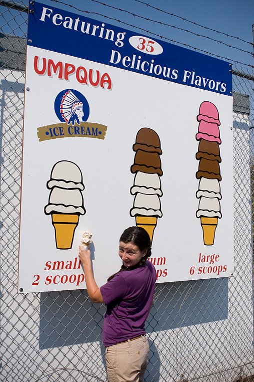 The agenda for Monday included to visit REI and buy a Jet Boil pot for cooking food. Eat Umpqua Ice Cream for Breakfast, visit the Wildlife Safari and Milo Elementary School to see Traci's stomping ground.